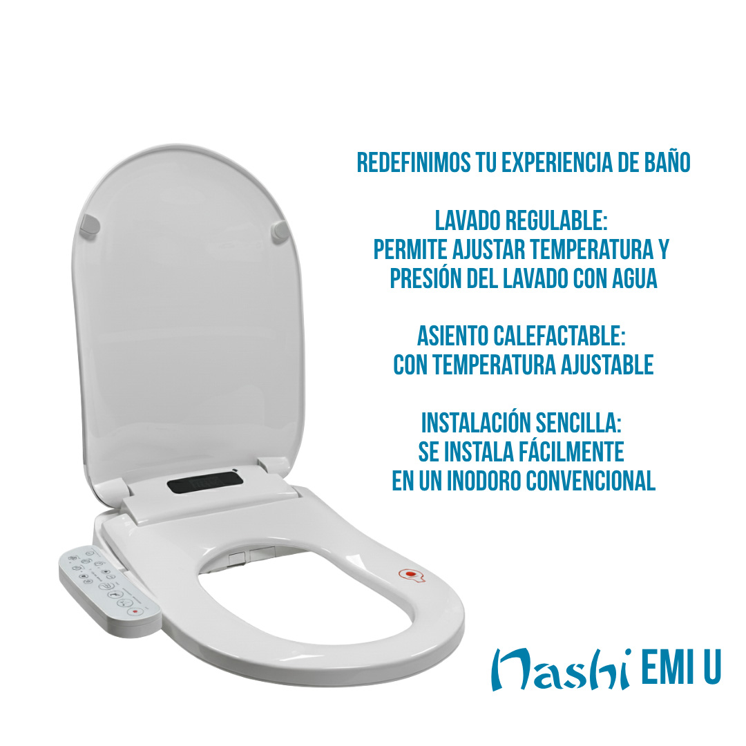 El asiento de inodoro Emi de Nashi le proporciona lo último, en experiencia de limpieza de baño y en alta tecnología disponibles en la actualidad, y todo gracias a su excelente optimización en la integración de sus mecanismos que dejan un espacio mucho mas amplio para sentarse cómodamente en el wc.