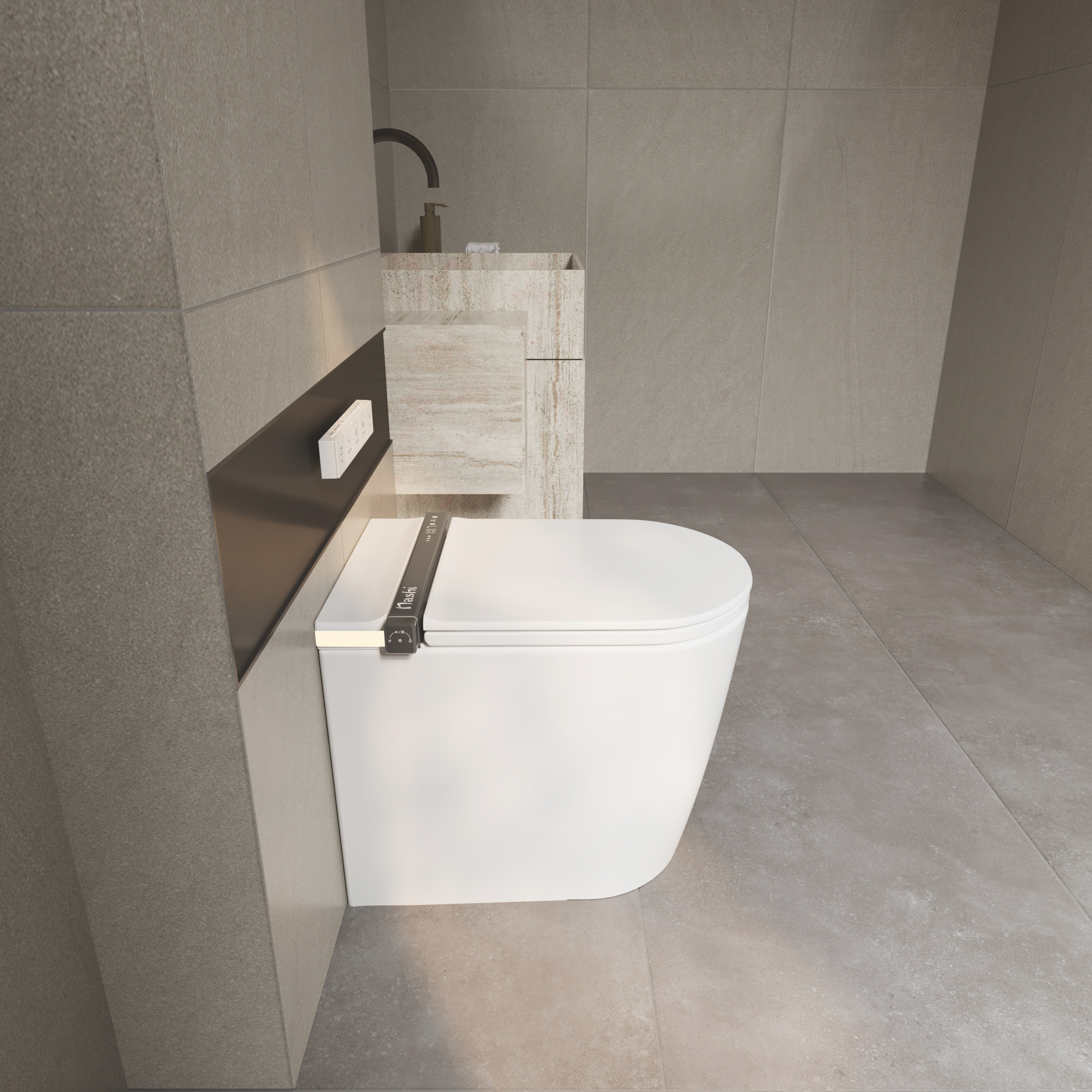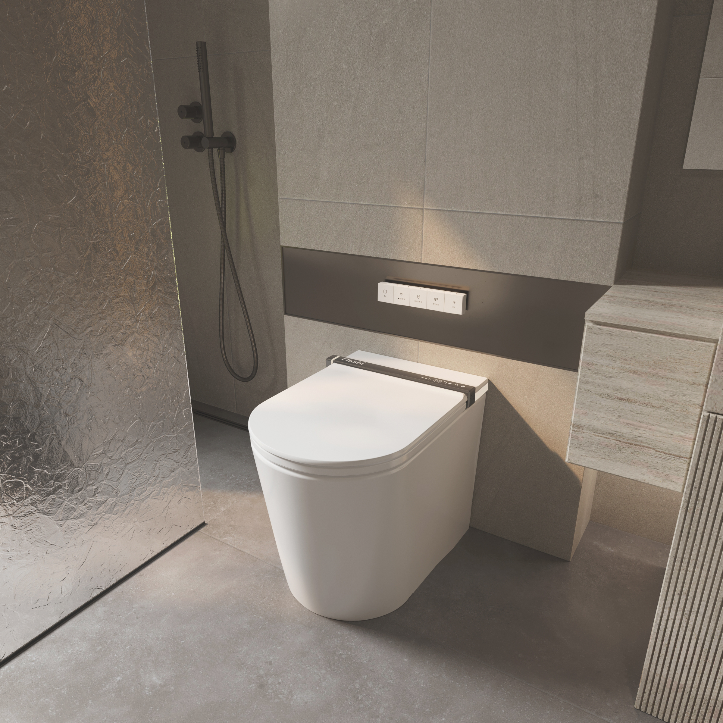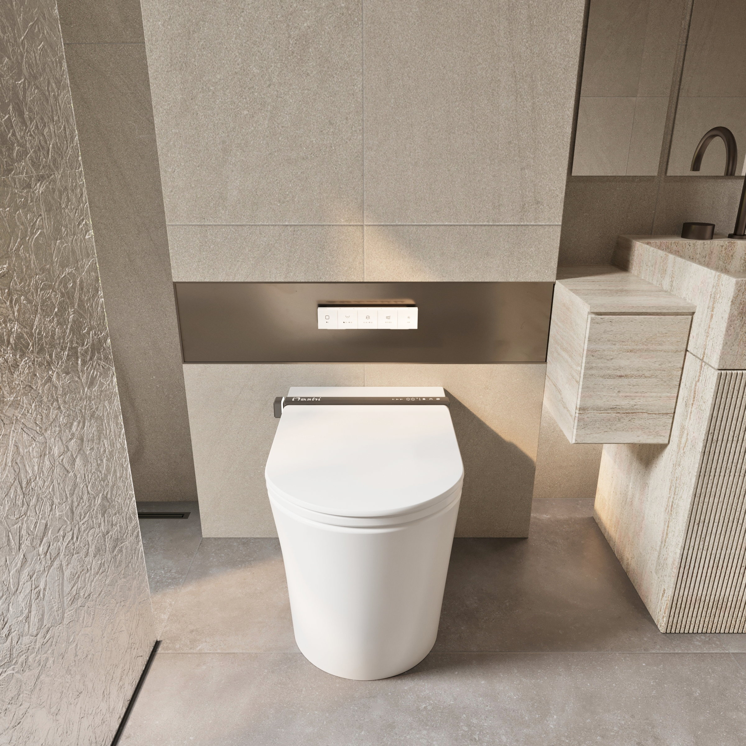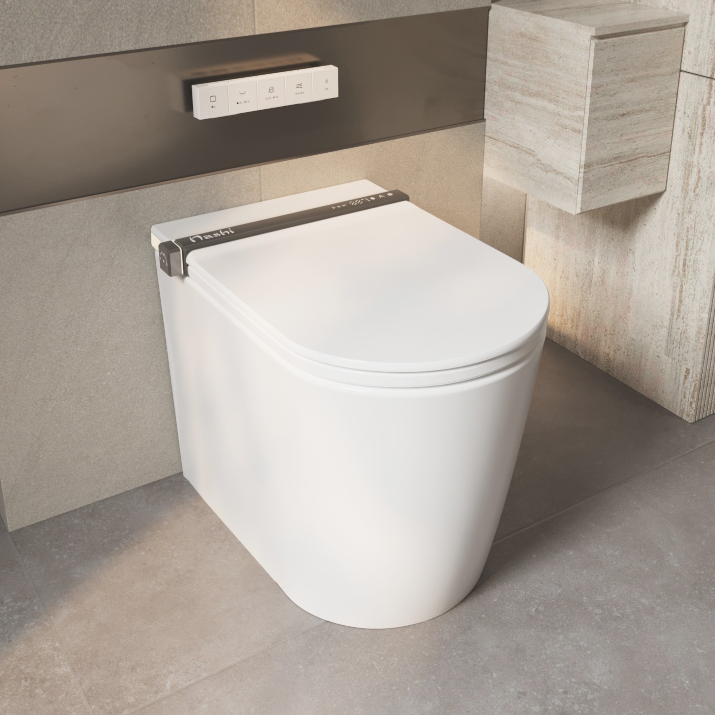 El Nashi iAnna SE es un inodoro japonés Premium totalmente pegado a la pared equipado con todas las funciones avanzadas, como apertura automática, espuma anti-salpicaduras y destacando especialmente por su secado ultrarrápido, que garantiza una higiene máxima al eliminar por completo el contacto con la piel.