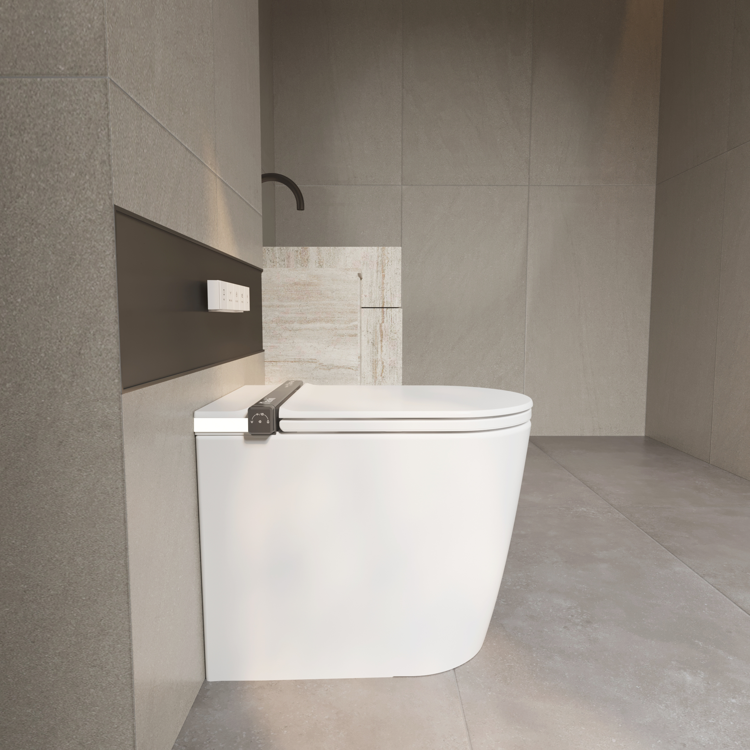 – Instalación con conexiones ocultas: Para una estética más limpia y minimalista, las conexiones pueden quedar completamente ocultas dentro de la pared. En este caso, es necesario prever una línea de luz específica para el inodoro, garantizando una instalación segura y eficiente.