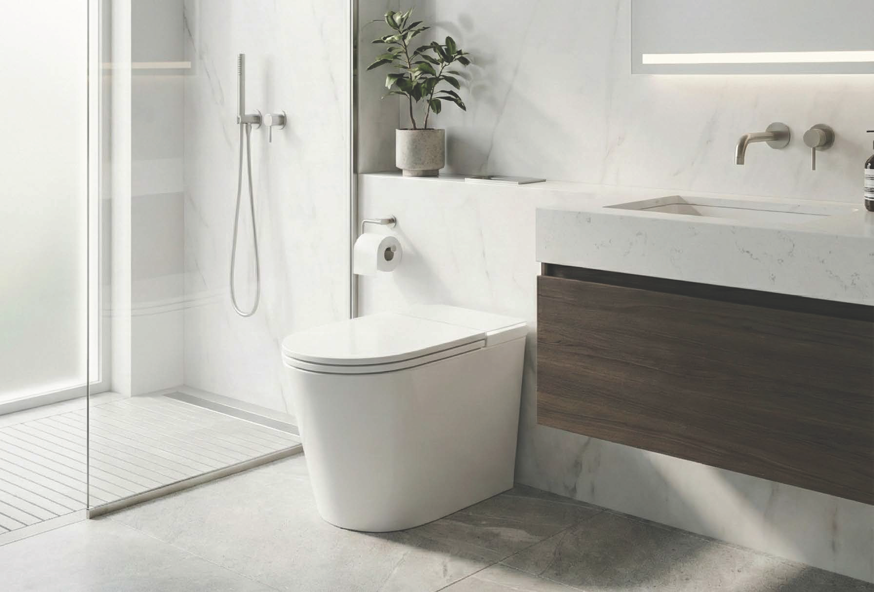 En ambos casos, el inodoro queda completamente a ras de la pared, garantizando una estética impecable y facilitando la limpieza del baño.