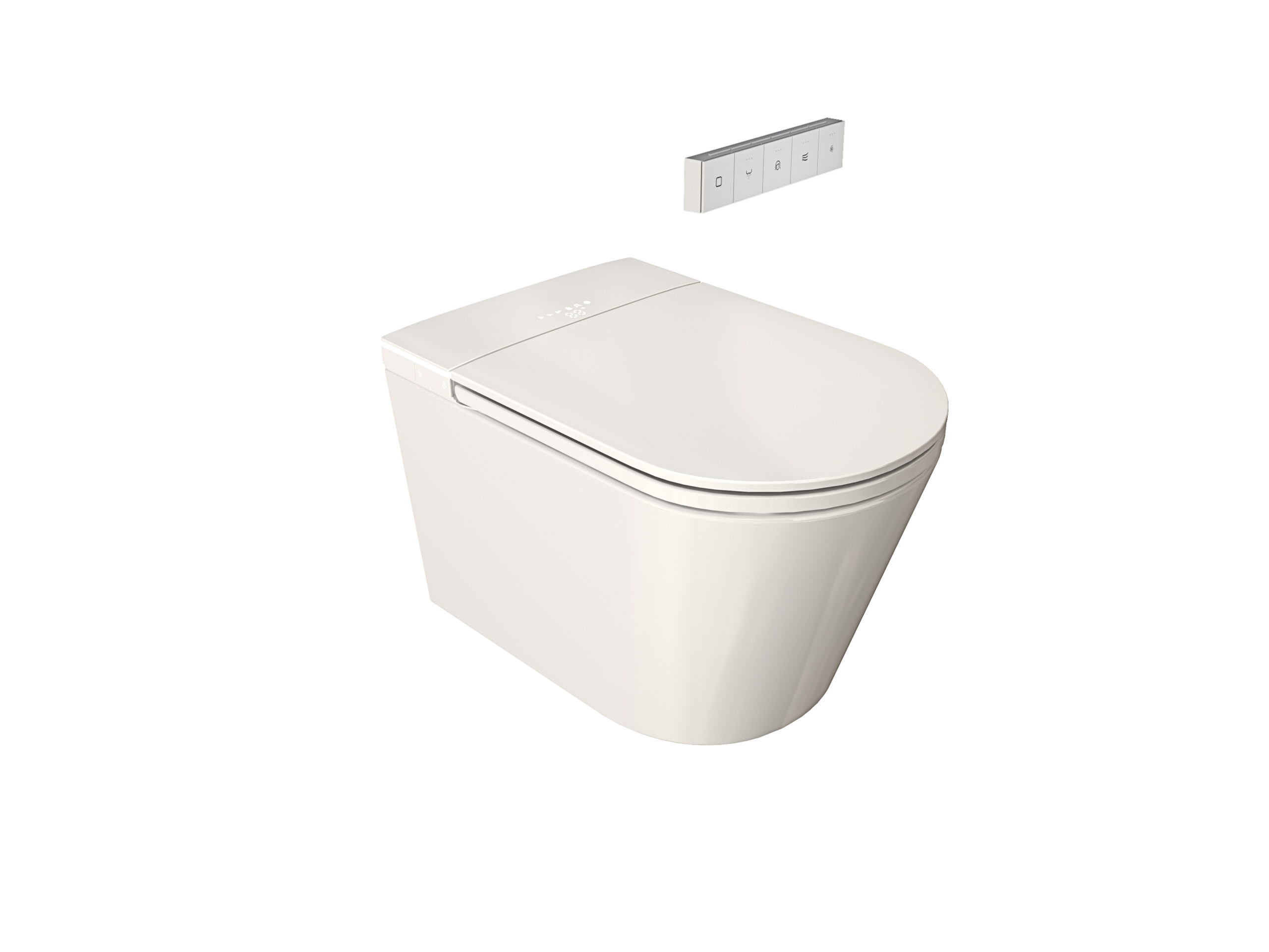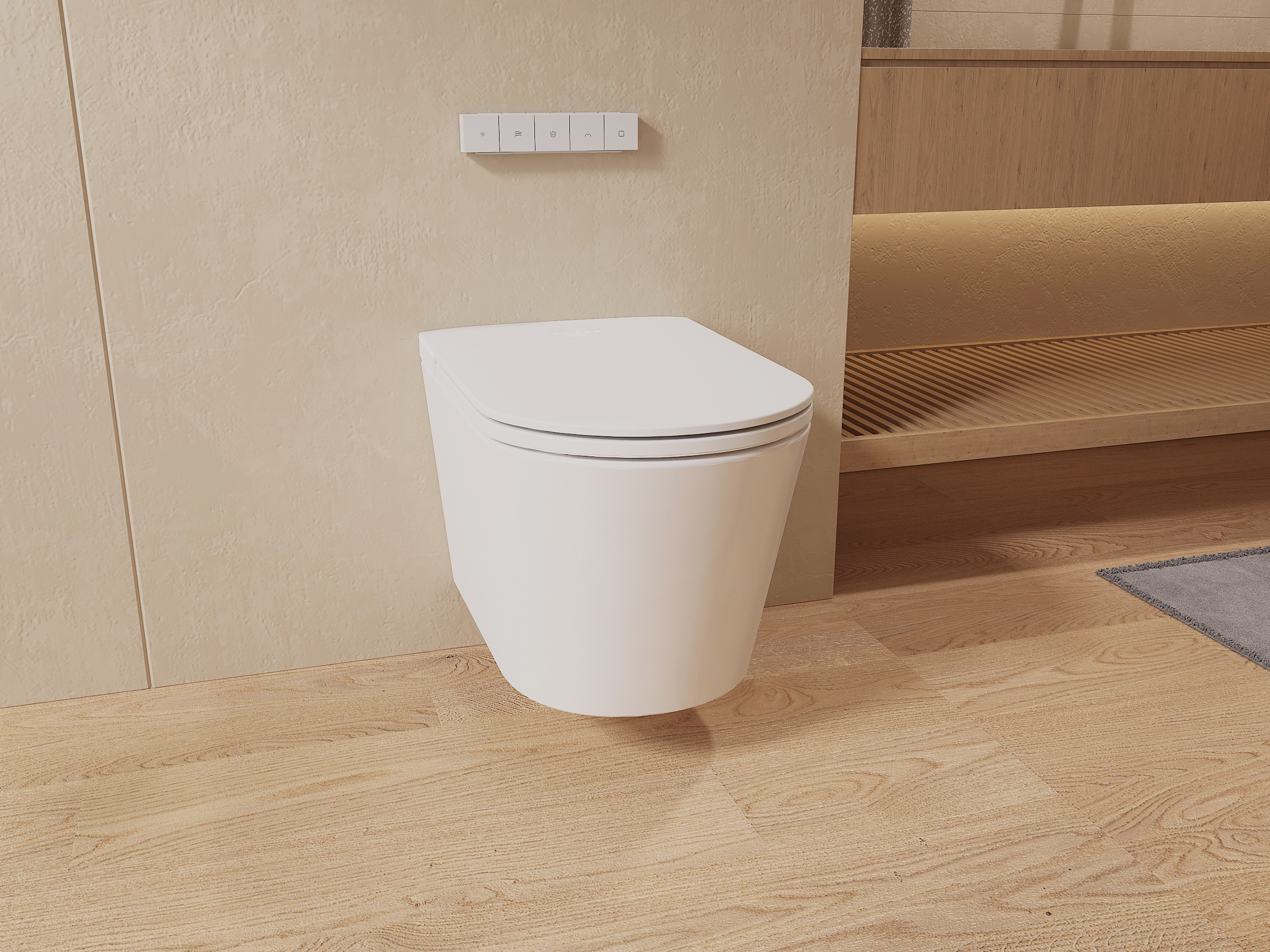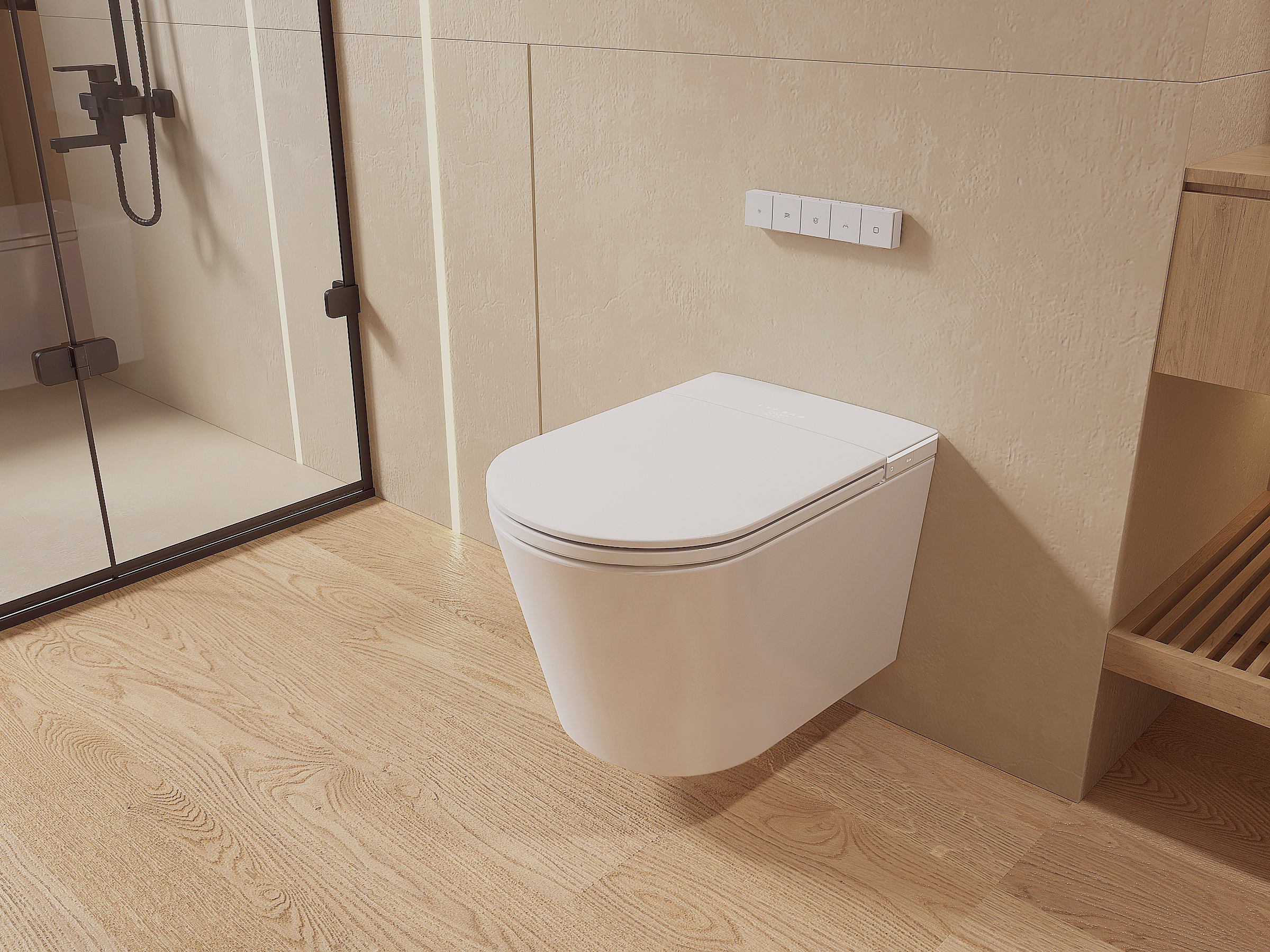 Nashi Smart Suspendido, el inodoro japonés mas inteligente colgado en la pared, que cuenta con una cisterna integrada y equipado con todas las funciones avanzadas, como apertura automática, espuma anti-salpicaduras y destacando especialmente por su secado MovDrive que garantiza una higiene máxima al eliminar por completo el contacto con la piel.