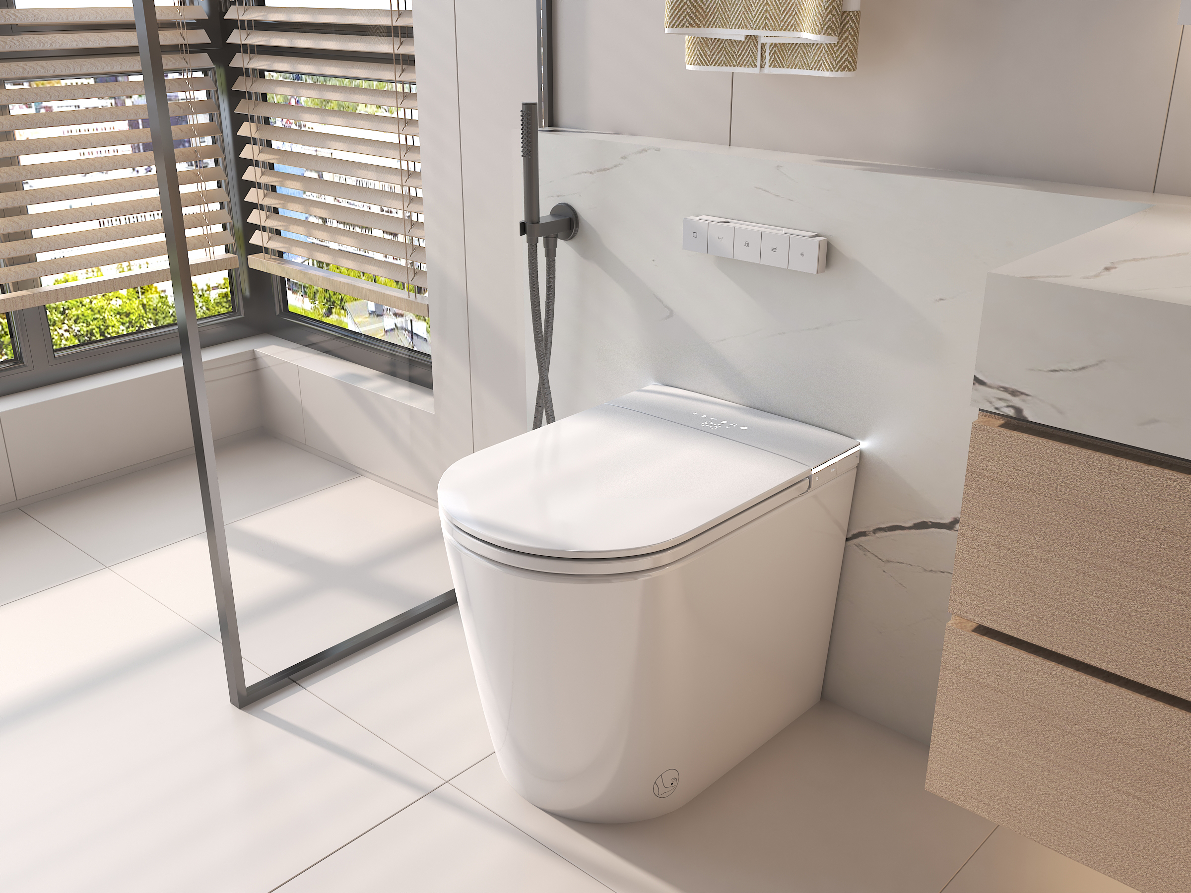 – Instalación con conexiones ocultas: Para una estética más limpia y minimalista, las conexiones pueden quedar completamente ocultas dentro de la pared. En este caso, es necesario prever una línea de luz específica para el inodoro, garantizando una instalación segura y eficiente.